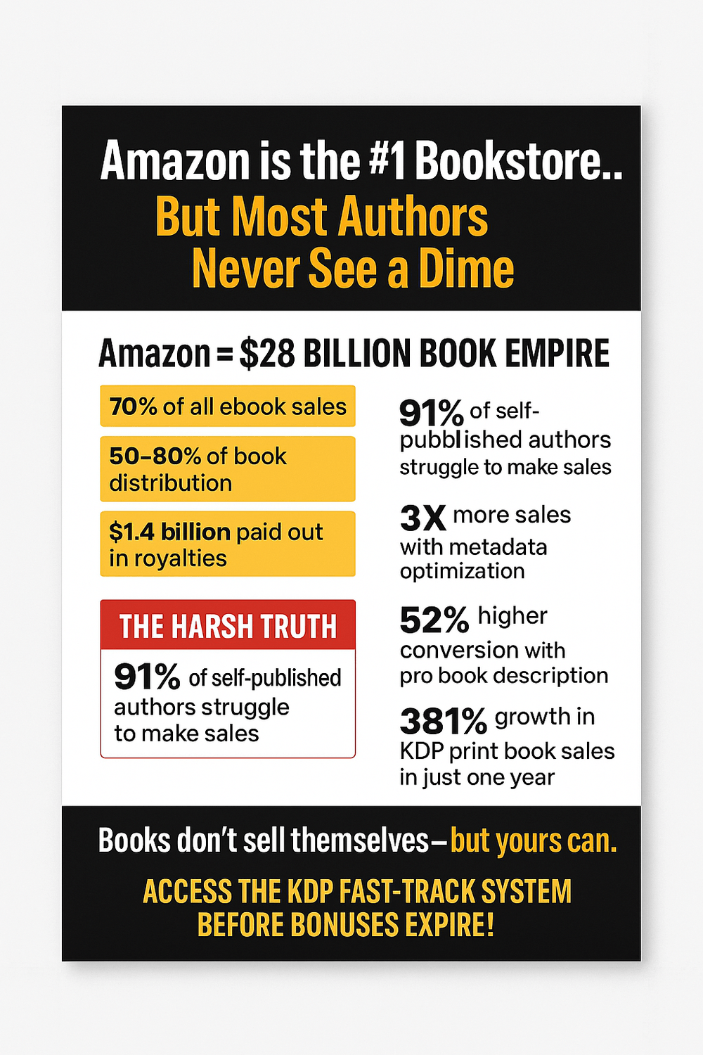 Yet, 91% of first-time self-publishers struggle to make sales.